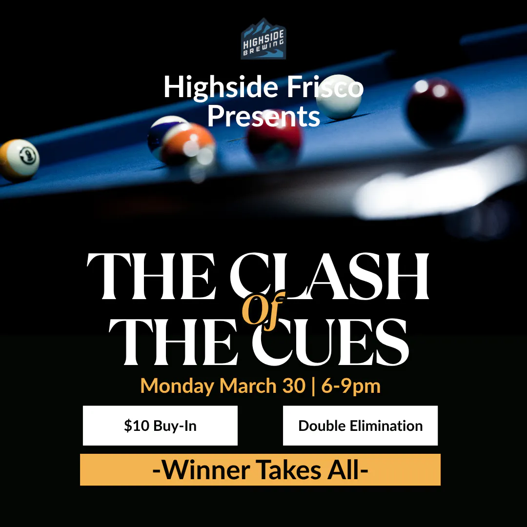 Highside Frisco is hosting Clash of the Cues, a monthly pool tournament open to the public.